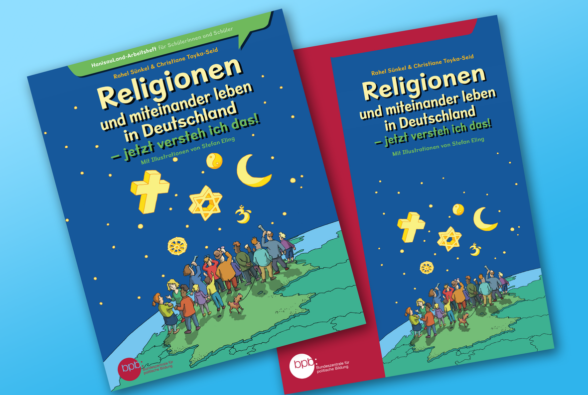 Das Themenheft-Set "Religionen und miteinander leben in Deutschland – jetzt versteh ich das!" besteht aus einem Arbeitsheft für Lernende sowie einem Begleitheft für Lehrkräfte.